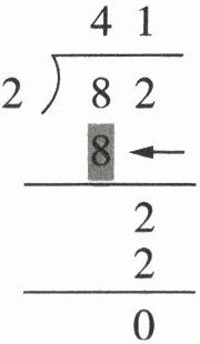 5. 有82瓶矿泉水,每名运动员分2瓶,可以分给多少名运动员? 琳琳用竖式计算出了结果,竖式中涂色部分的“8”表示(