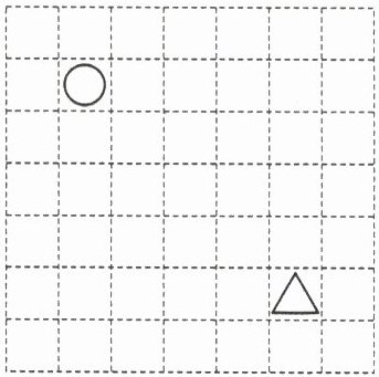 再向下平移2格,在向右平移3格后的○位置基础上向下移动2格画出○。