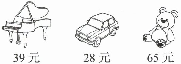 买3架玩具钢琴的钱数,买1个玩具熊的钱数,买3架玩具钢琴的钱数,买3架玩具钢琴的钱数,39×3=117(元),117-65=52(元)