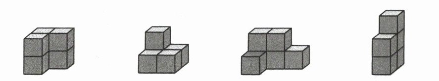 1. 用5个同样大的正方体拼成一个物体,从右面看是,