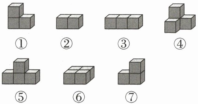 1. 聪聪用同样大的正方体摆成了下面几个物体。(在括号里填序号)