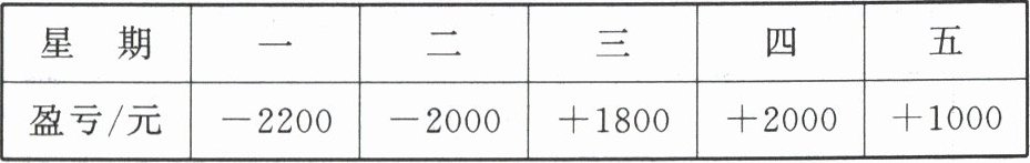 |盈亏/元|$-2200$|$-2000$|$+1800$|$+2000$|$+1000$|