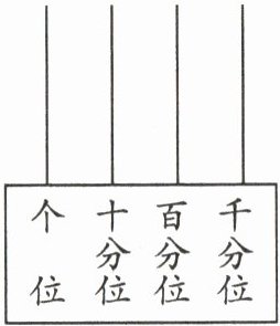 5. 如图,小明在这个计数器上用15颗数珠拨出了一个三位小数,且图中四个数位上都有数珠,这个小数最大是多少?最小呢?(要求:各个数位上的数珠数量不一样)(6分)