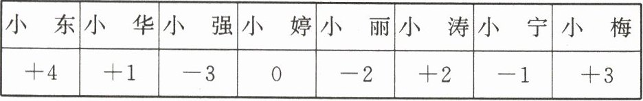 2. 8名同学做引体向上,老师将做满8个作为标准,超过的个数记为正数,不足的个数记为负数,这8名同学的成绩如下表: