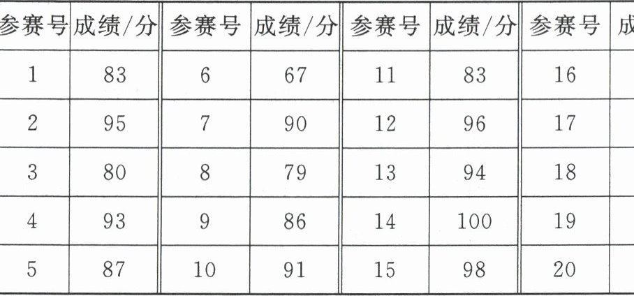 |参赛号|成绩/分|参赛号|成绩/分|参赛号|成绩/分|参赛号|成绩/分|