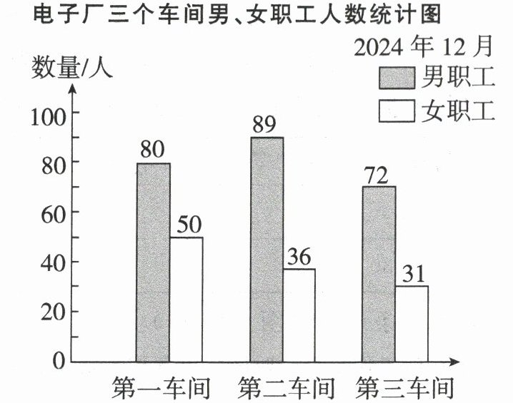 )车间男、女职工的人数相差最少,相差(30
