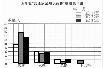 五年级“交通安全知识竞赛”成绩统计图