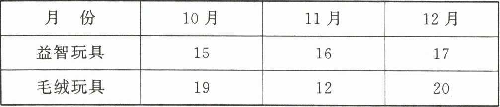 某玩具店在2024年第四季度推出了一系列优惠促销活动。下面是该玩具店在这三个月的玩具销售情况统计表(单位:件):