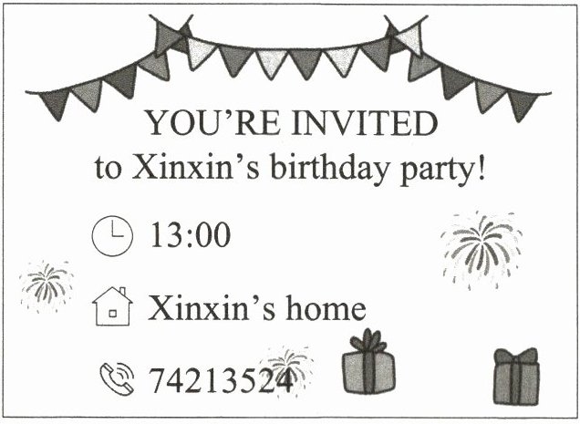 A. 阅读新新的生日邀请函,选择正确的答案。(8 分)