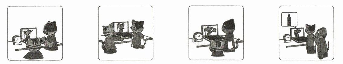 五、萨姆 (Sam) 特别想念他去周游世界的好朋友博比 (Bobby),于是他与博比进行了视频通话。请根据对话内容,为下列图片排序。(4 分)