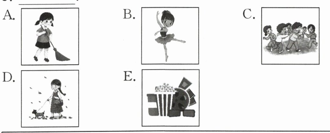 1. cute 2. eyes 3. dancing 4. watching films 5. cleaning 6.C 7.B 8.D 9.E 10.A