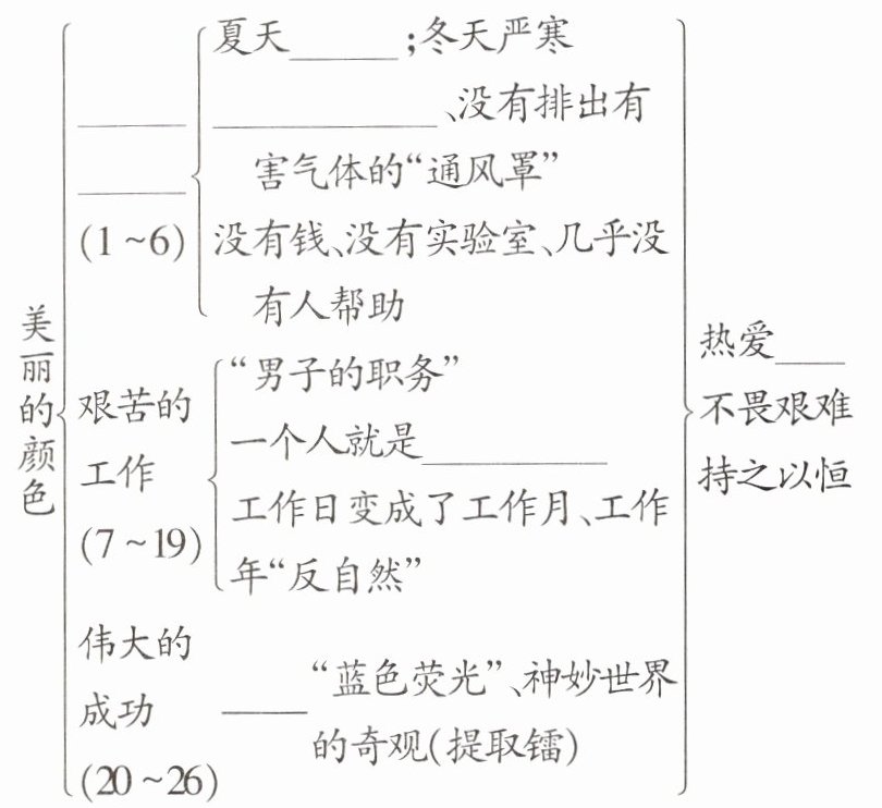2. “美丽的”既指镭光芒的美丽,更指居里夫人夫妇对科学的执着追求、坚定信念和无私奉献的精神之美。