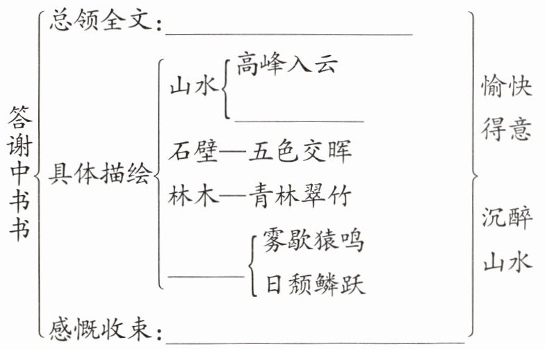 《答谢中书书》是南朝文学家陶弘景写给朋友谢中书的一封书信。文章以感慨发端,言有高雅情怀的人才可能品味山川之美,将内心的感受与友人交流,是人生一大乐事,反映了作者娱情山水的思想。作者正是将谢中书当作能够谈山论水的朋友,同时也期望与古往今来的林泉高士相比肩。