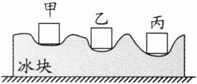 7. 将质量相同的甲、乙、丙三块金属浸没在沸水中煮一段时间后,捞出来放到上表面平整的冰块上。经过一定时间后,冰块形状基本不再变化时的情形如图所示。则甲、乙、丙三块金属的比热容大小关系是(