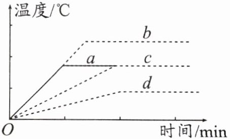 8. 给一定质量的水加热,其温度与时间的关系如图中 $a$ 图线所示,若其他条件不变,仅将水的质量增加,则温度与时间的关系图线正确的是(