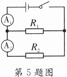 5. 如图所示的电路中,电源电压恒定,电阻 R₁ = R₂。闭合开关时,发现两个电流表示数相等,且均在正常值范围内,则出现的故障是(