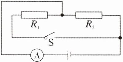 9. 如图所示,当开关 S 断开和闭合时,电流表示数之比是 1∶4,则电阻 R₁ 和 R₂ 之比是(