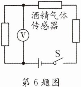 6. 酒精测试仪可检测驾驶员是否酒后驾车,如图是它的原理图。图中酒精气体传感器的电阻的倒数与酒精气体的浓度成正比,如果测试到的酒精气体浓度越大,那么(