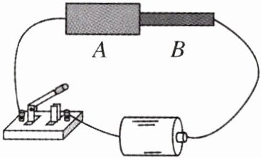 9. 如图,导体 $ A $、$ B $ 是由同种材料做成的,$ A $ 和 $ B $ 等长,但 $ A $ 比 $ B $ 的横截面积大。闭合开关后,在相同时间内,下列叙述正确的是(