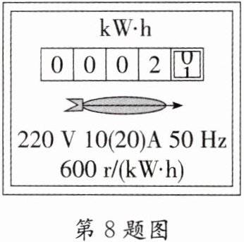 的仪表。若将某用电器单独接在该电能表上,正常工作 $ 60 \, min $,电能表表盘转过了 $ 1200 $ 转,则该用电器在上述时间内消耗的电能是0.4