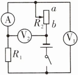 滑动变阻器R₂的滑片置于a端时,电压表V₁的示