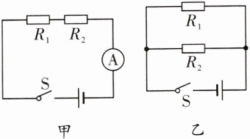 11. 已知$R_1=2\Omega$,$R_2=3\Omega$,某同学分别按照图甲和图乙两种方式将电阻连接在一起,则(