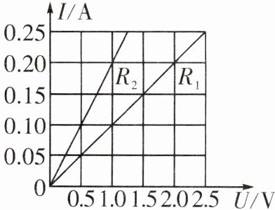 D.将两电阻并联接入电路,通电 1 分钟,电流通过 $ R_1 $ 产生的热量与电流通过 $ R_2 $ 产生的热量之比为 1 : 2