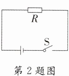 2. 如图所示,是超市常用的塑料袋封口夹电路原理图,电源电压为 5 V,电热丝 R 阻值为 1 Ω。闭合开关 S,电热丝温度升高,利用电流的