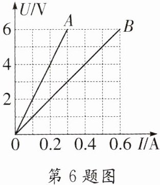 6. (2024·西宁)如图所示是 $ R_A $ 和 $ R_B $ 两个定值电阻的 $ U - I $ 图像,由图像可知 $ R_A : R_B = $