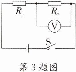 3. (2024·安徽)如图所示,电源两端电压为 6 V,电阻 $ R_2 = 20 \Omega $。闭合开关 S,电压表示数为 4 V,则通电 100 s 整个电路产生的热量为