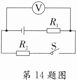 14. 在探究串联电路电压的实验中,张高林同学连接完电路,在开关断开时,发现电压表示数为9V,合上开关后,发现电压表示数变为3V。如图所示,对这一电路分析正确的是(