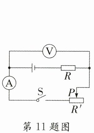 11. 在如图所示的电路中,电源电压恒定,当开关S闭合,在滑动变阻器R'的滑片P从最右端往左移动的过程中,下列说法正确的是(