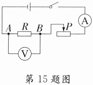 15. 在“探究电流与电阻关系”的实验中,电路如图所示,电源电压为6V,所选用的定值电阻分别为10Ω、15Ω、20Ω、25Ω,先在AB间接入10Ω的定值电阻R,闭合开关,移动滑片P,使电压表的示数为2.5V,读出电流表的示数。下列说法中正确的是(