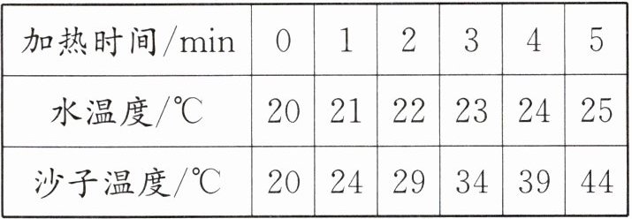 (2)实验测得数据如表格所示,分析可知沙子比水的吸热能力