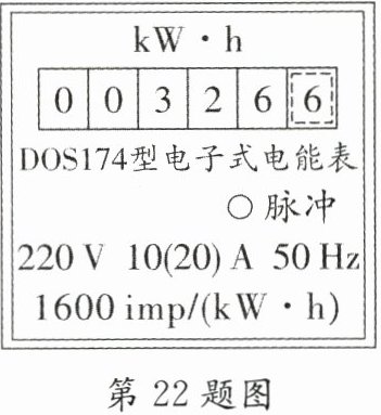 22. (2024·盐城)在“对家庭用电的调查研究”综合实践活动中,小明发现家中电能表表盘如图所示,该电能表的示数为