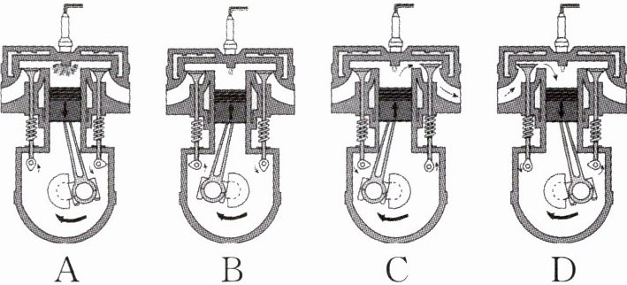 6. 如图所示是单缸四冲程汽油机工作的四个冲程示意图,其中使汽车获得动力的冲程是(