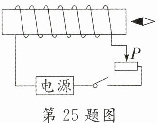 25. 如图所示,闭合开关S,通电螺线管右侧的小磁针静止时,小磁针的N极指向左,则电源的右端为
