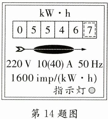 14. 小明家电能表的表盘如图所示,下列说法正确的是 (