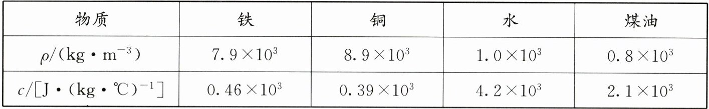 )A. 单位质量的铁温度升高1℃时,吸收的热量是7.9×10³J