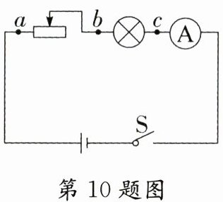 10. 如图所示电路,小灯泡不亮,电流表无示数。将电压表接在ab两点无示数;接在ac两点有示数。则故障原因可能是(