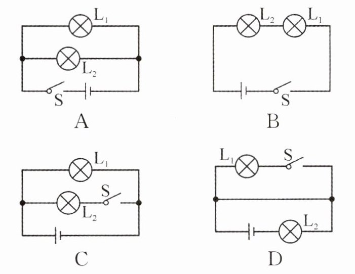 【例题 4】教室里的日光灯总是同时亮,同时熄灭,但若其中一个日光灯坏了,其他的灯仍可照常发光,则这些日光灯的连接方式是(