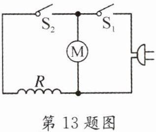 13. 如图所示是一把既能吹冷风、又能吹热风的吹风机的简化电路图,其中 M 是电动机,R 是电热丝。由电路图可知(