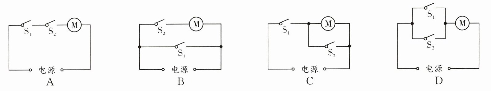8. “一盔一带安全常在”,小佳想制作一款智能头盔,只有戴上头盔扣上卡扣后,头盔上的信号发射器才能发出信号,当电动车上的信号接收器(S₁)接收到信号,再转动电动车钥匙(S₂),车才能正常启动,下列电路中符合要求的是(