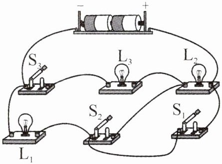 )A.三个开关都闭合时,灯 $ L_2 $与 $ L_3 $并联