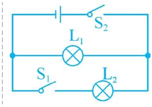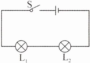 B.只闭合开关 $ S_2 $时,灯 $ L_1 $与 $ L_2 $串联