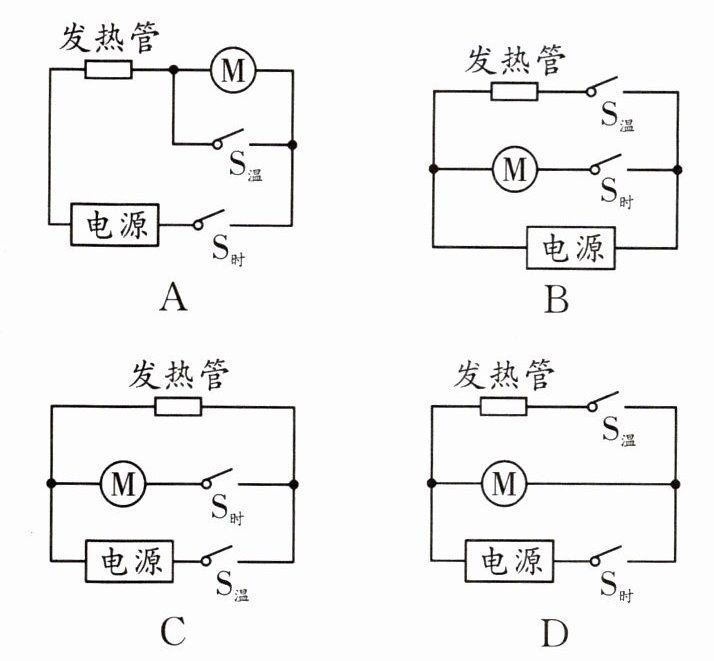 13. 使用空气炸锅(如图所示)时发现:同时闭合定时开关和温控开关产生热风,仅闭合定时开关产生冷风,不会只发热不吹风。则其电路可能是(