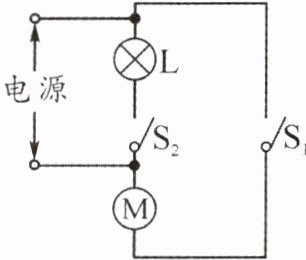 )A.S₁ 闭合、S₂ 断开时,照明灯与电动机并联