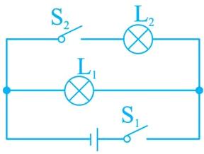 14. 如图所示的电路中,当开关 S₁、S₂ 均闭合后,则(