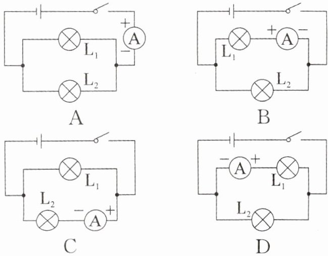 【变式 1】如图所示,能直接测量出通过 $L_1$ 电流的电路是(