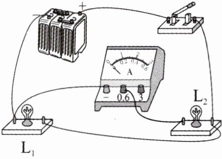 14. 在如图所示的电路中,$ L_1 $ 和 $ L_2 $ 是规格不同的两个灯泡,开关闭合后电流表示数是 $ 0.5 \, A $,则(